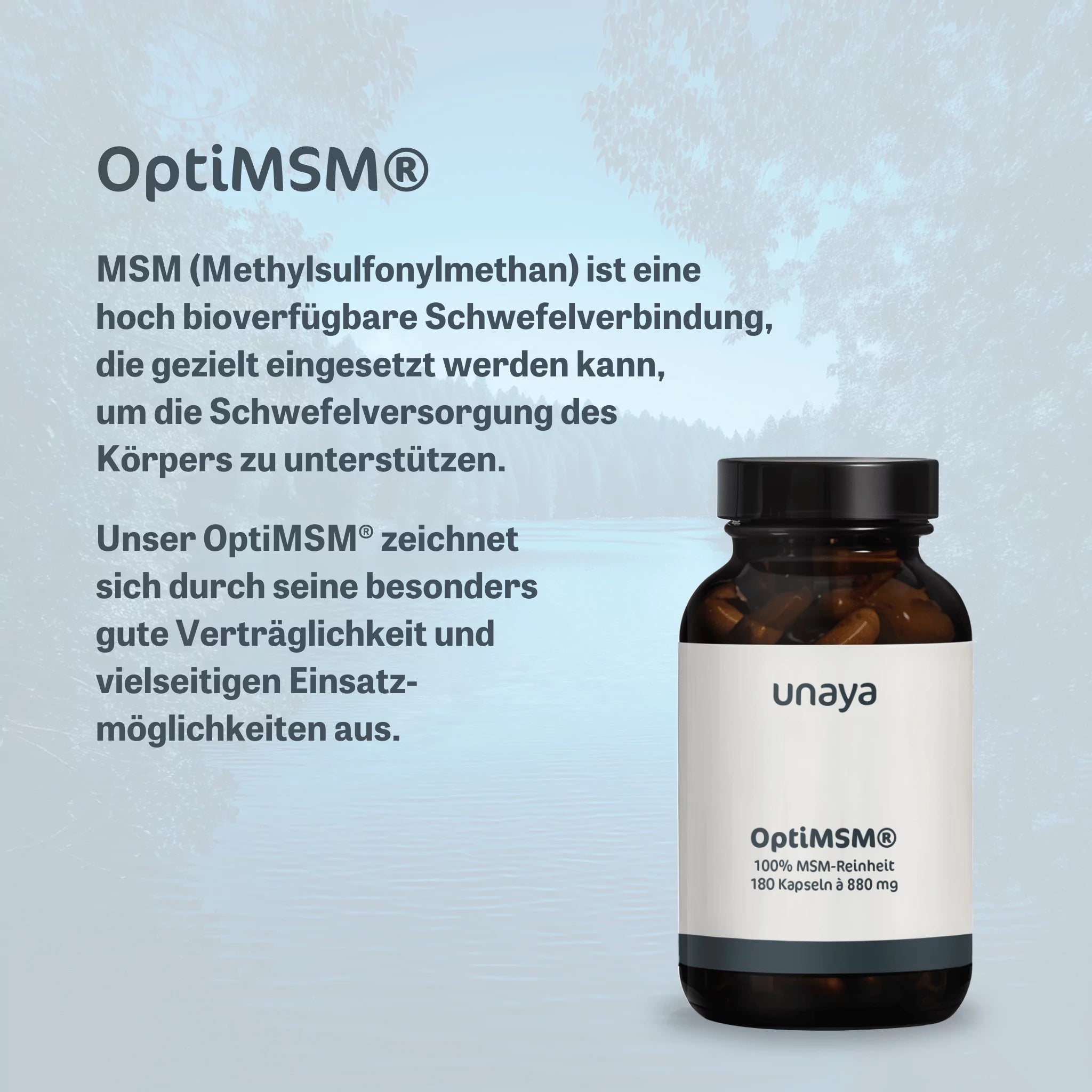 Destilliertes Methylsulfonylmethan (OptiMSM®), Kapselhülle: Hydroxypropylmethylcellulose.