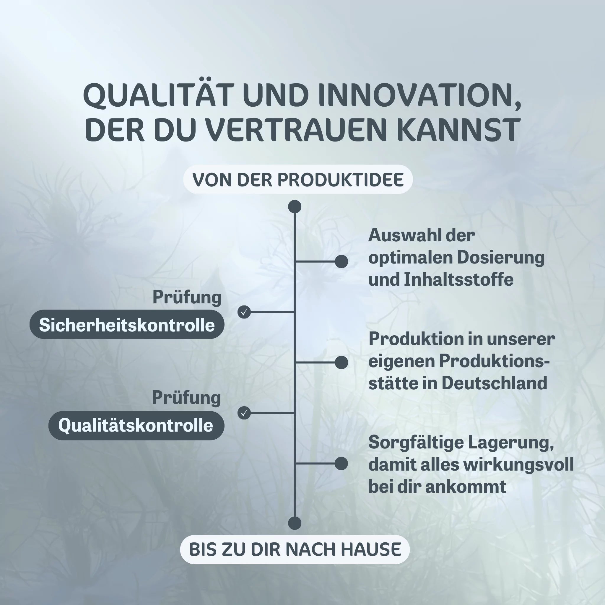 Größtmögliche Transparenz über unsere Inhaltsstoffe und Herstellungsverfahren, damit Du genau weißt, was Du zu Dir nimmst.